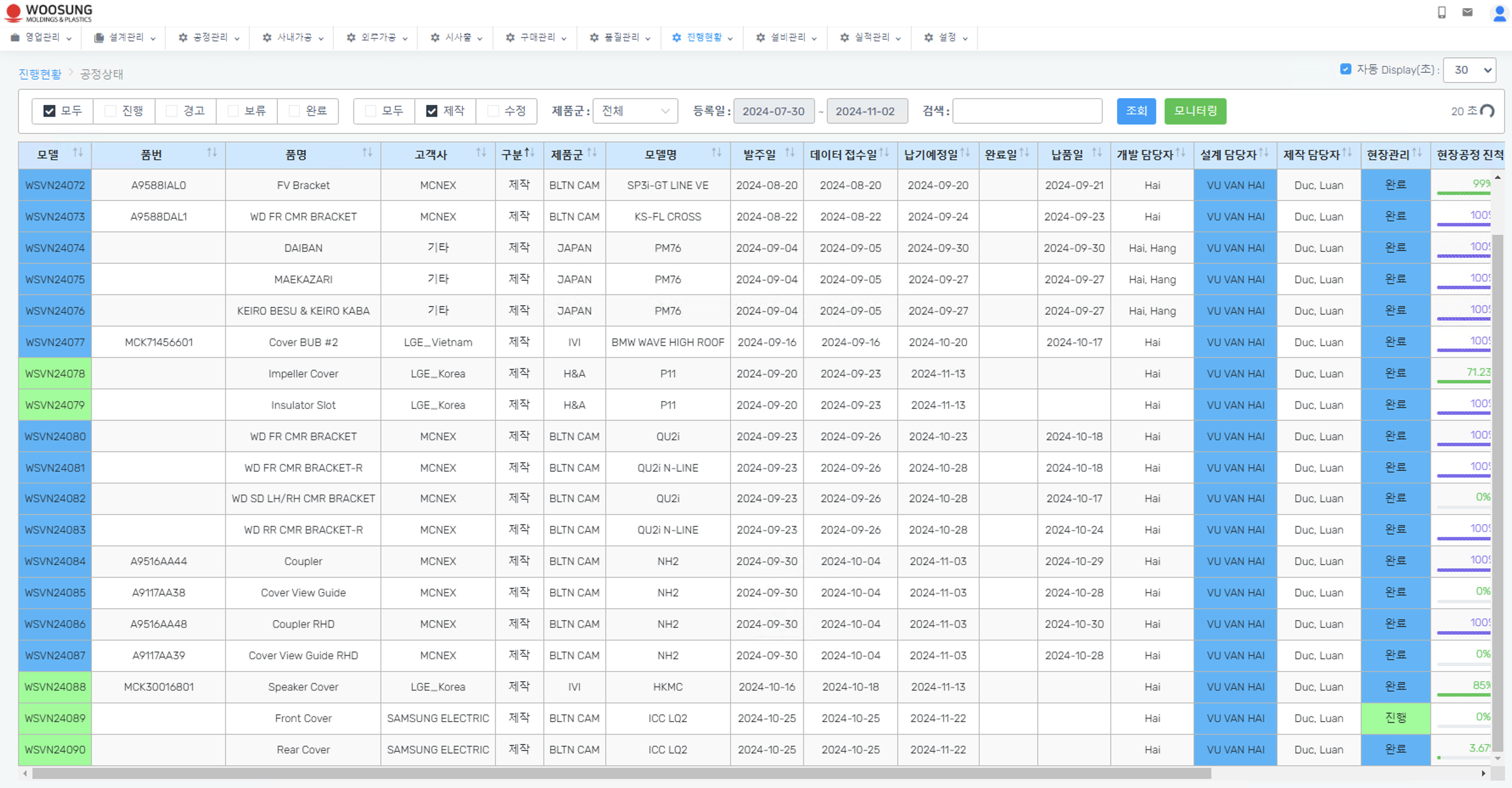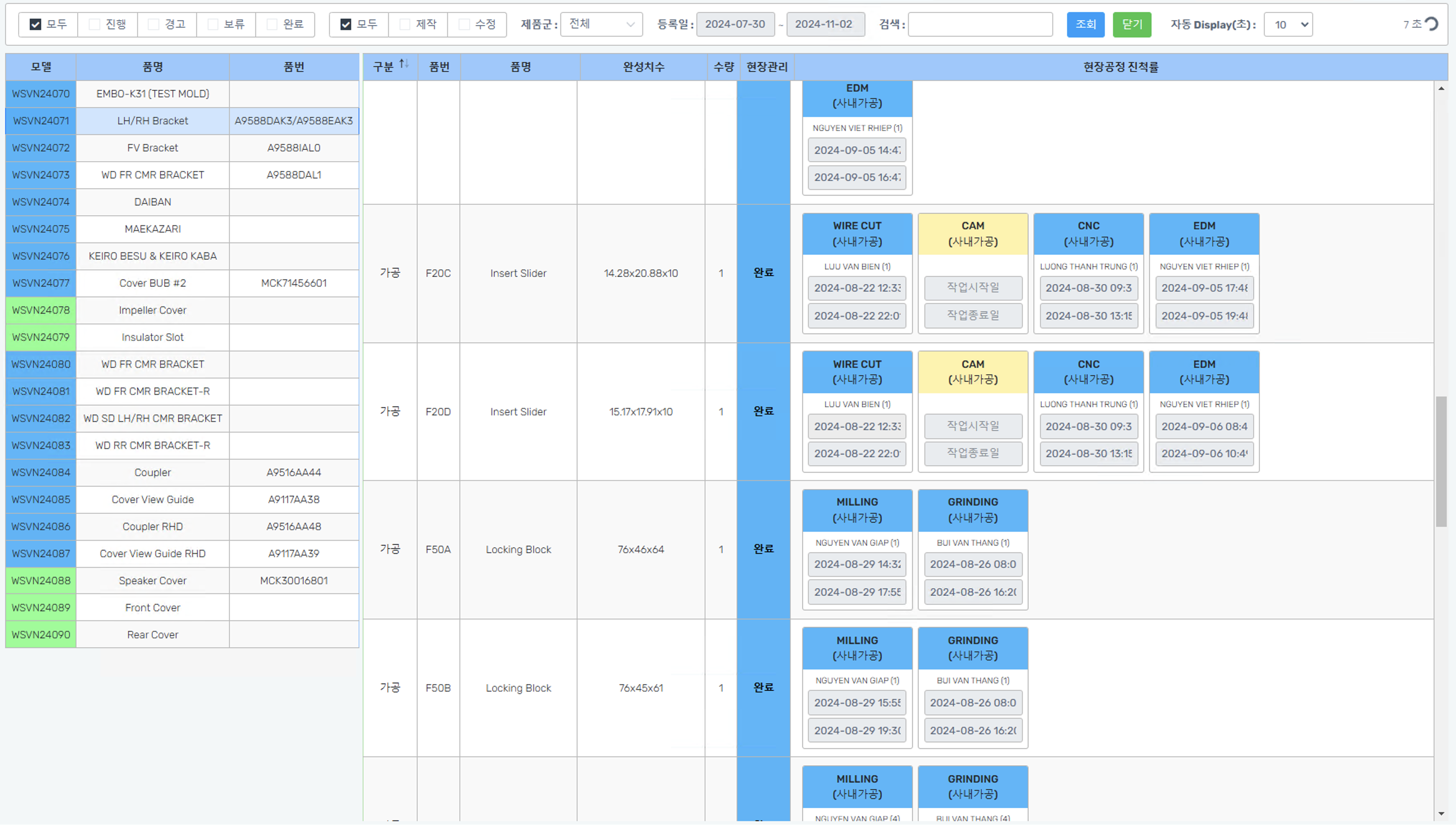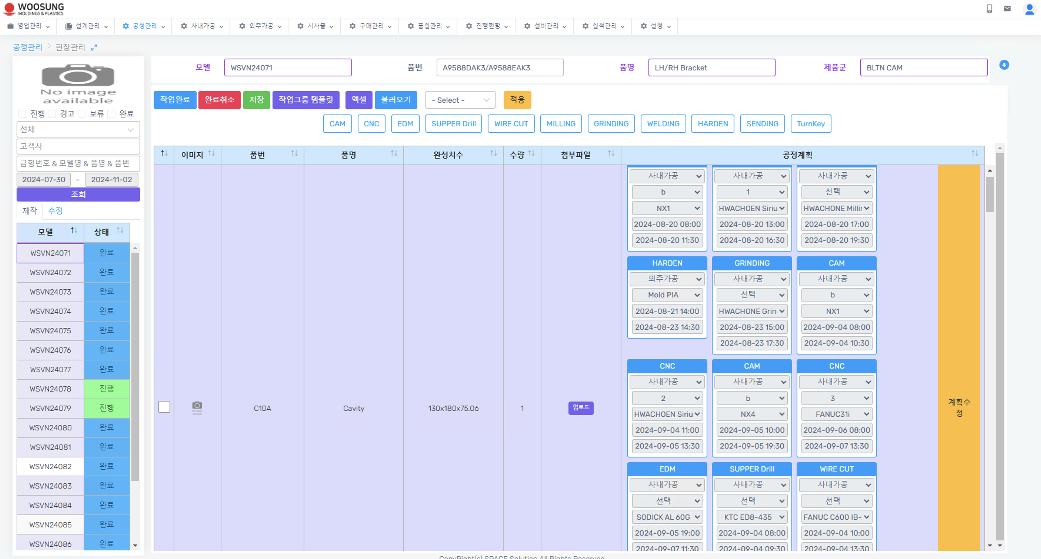 웹, 스마트폰, 데이터베이스 및 프로세스 관리를 통해 병렬 업무 처리가 가능하기 때문에 전체 공정 진행상황을 실시간으로 확인할 수 있으며, 부서별 업무진행 정보, 설비 가동 현황 정보, 외주가공 및 구매 협력사 정보 등을 실시간으로 확인할 수 있습니다.